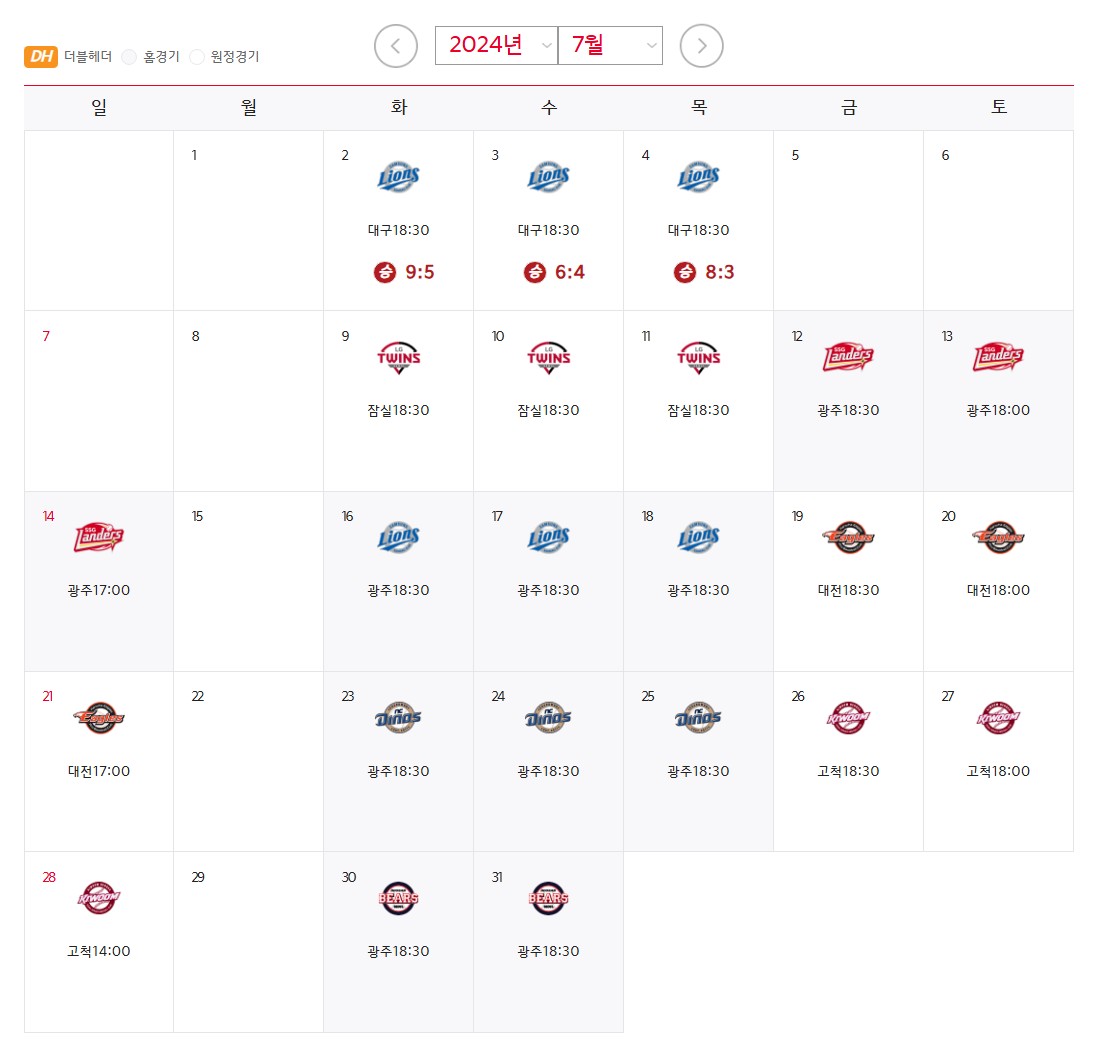 kbo 프로야구 전반기 경기가 끝나고 이제 후반기에 접어들었습니다. 현재 정규리그 순위 1위를 유지하고 있는 기아 타이거즈의 하반기 경기 결과도 궁금해지는데요, 기아타이거즈 7월 경기 일정 홈경기 일정 알아보도록 하겠습니다.