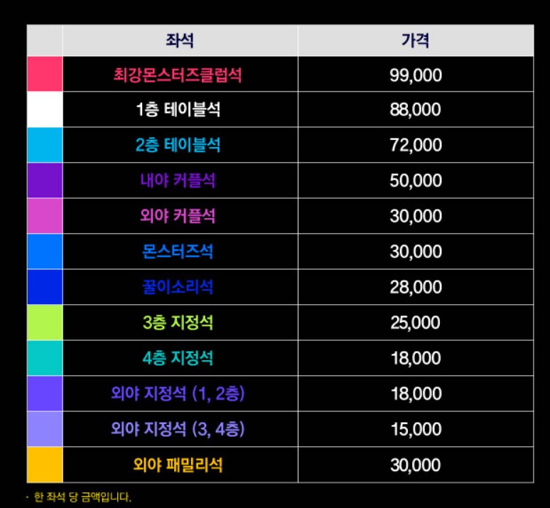 최강몬스터즈 클럽석은 99,000원인데 좌석이 많지 않아 어떤 분들이 쟁취하시게 될지 정말 궁금하네요.